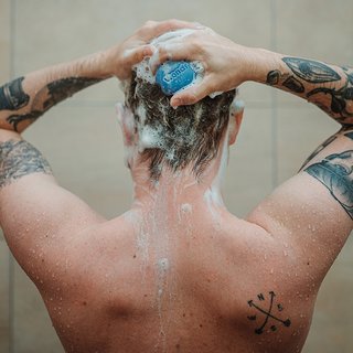 • Maak de shampoo bar nat en wrijf er zachtjes mee over je haar. Schuimt het niet genoeg? Wrijf dan de bar in je handen en breng zo de shampoo aan op je haar.