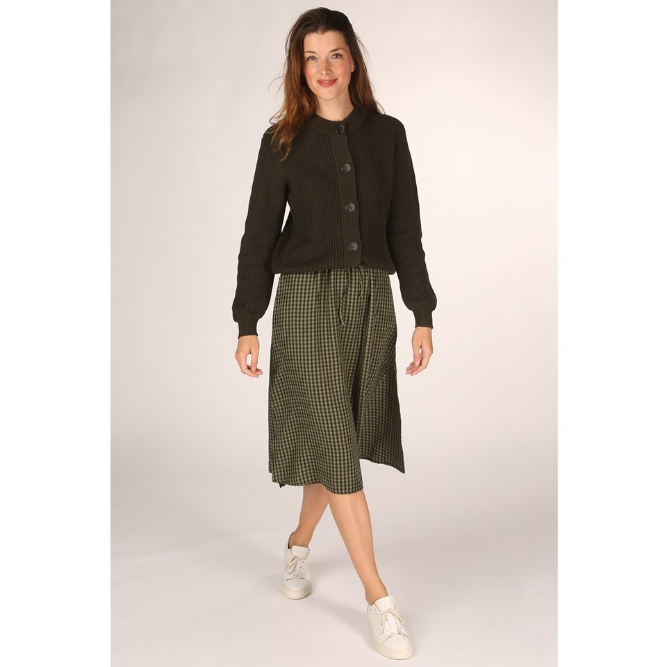 - een rok tot op de knie of halverwege de kuit, want die gaat visueel verlengen