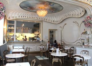 In het chique theesalon van Claude nip je van een kopje thee in Franse boudoir stijl en ontdek je behalve scones, sandwiches en taartjes ook macarons op een rijkelijk versierd schoteltje. Het interieur is très over-the-top en alle meubels en tierlantijntjes zijn bovendien te koop.
