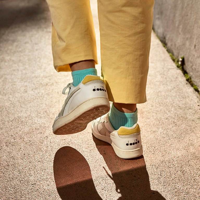 Sharing is caring, aldus het Italiaanse merk Diadora, dat in het Grieks zoveel betekent als ‘het delen van geluk en succes’. Het delen van team spirit, een liefde voor sport en een gezonde competitiedrang is al sinds 1948 het succesvolle recept van Diadora. Die passie, in combinatie met cutting-edge design, technologische innovaties en een oog voor duurzaamheid maakt het merk ook vandaag hotter than ever. Aanvankelijk bestond de collectie uit oerdegelijke sneeuwschoenen. In de seventies verwierf het merk bekendheid met hippe sportschoenen, gedragen door al even hippe iconen zoals Björn Borg. Vandaag heeft het merk drie collecties: sportswear (loop-, voetbal-, en tennischoenen én sportkledij), een utility lijn (veiligheidsschoenen en workwear) en een heritage-lijn (sneakers met vintage vibes), waarvan vooral die laatste - denk eighties/nineties hoge witte basketters - ons modehart sneller doet slaan en ons footloose maakt. Nog een reden nodig om nòg een paar sneakers te kopen? In 2019 won Diadora het EcoVadis Gold Medal voor duurzaam ondernemen. Guilty-free shopping? Check!